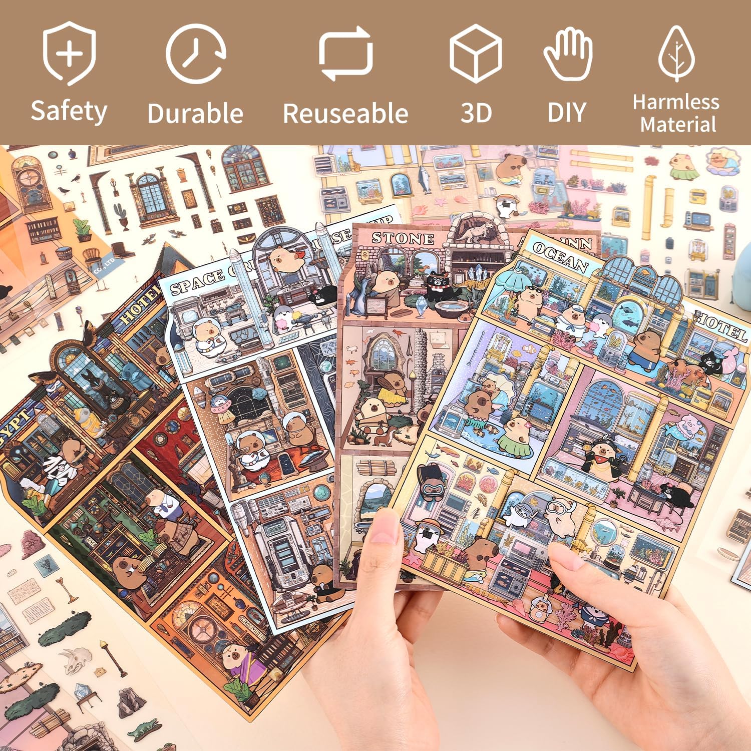 - Bring 4 different worlds to life with our 3D Scene Stickers: space cruise, ocean hotel, egypt hotel, stone age. These reusable stickers let you create and customize scenes however you like.